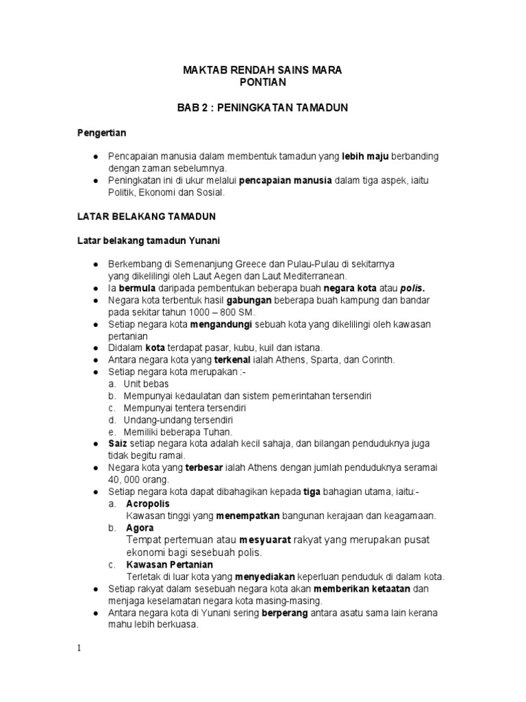 Nota Sejarah Tingkatan 4 Bab 2 Peningkatan Tamadun